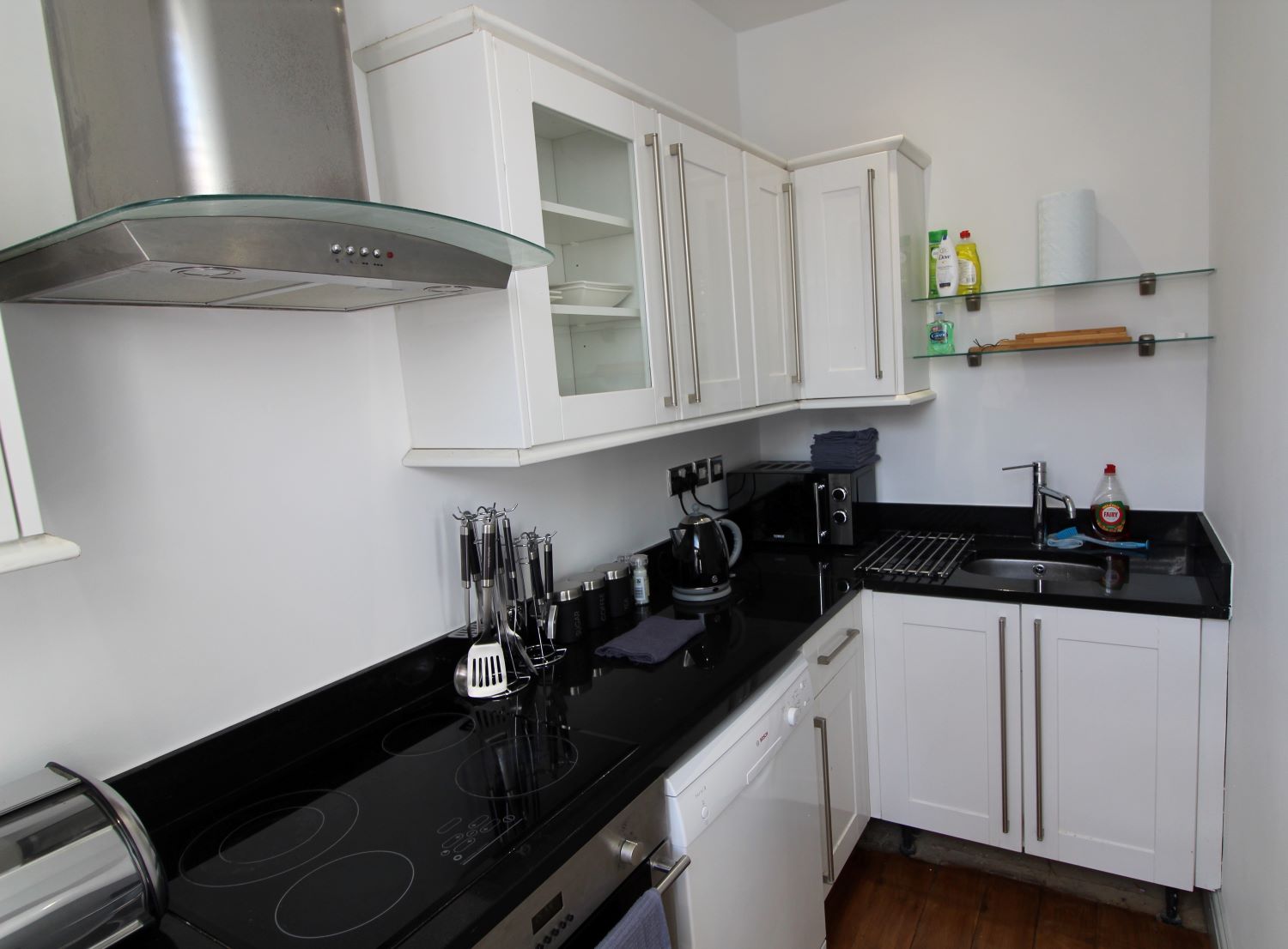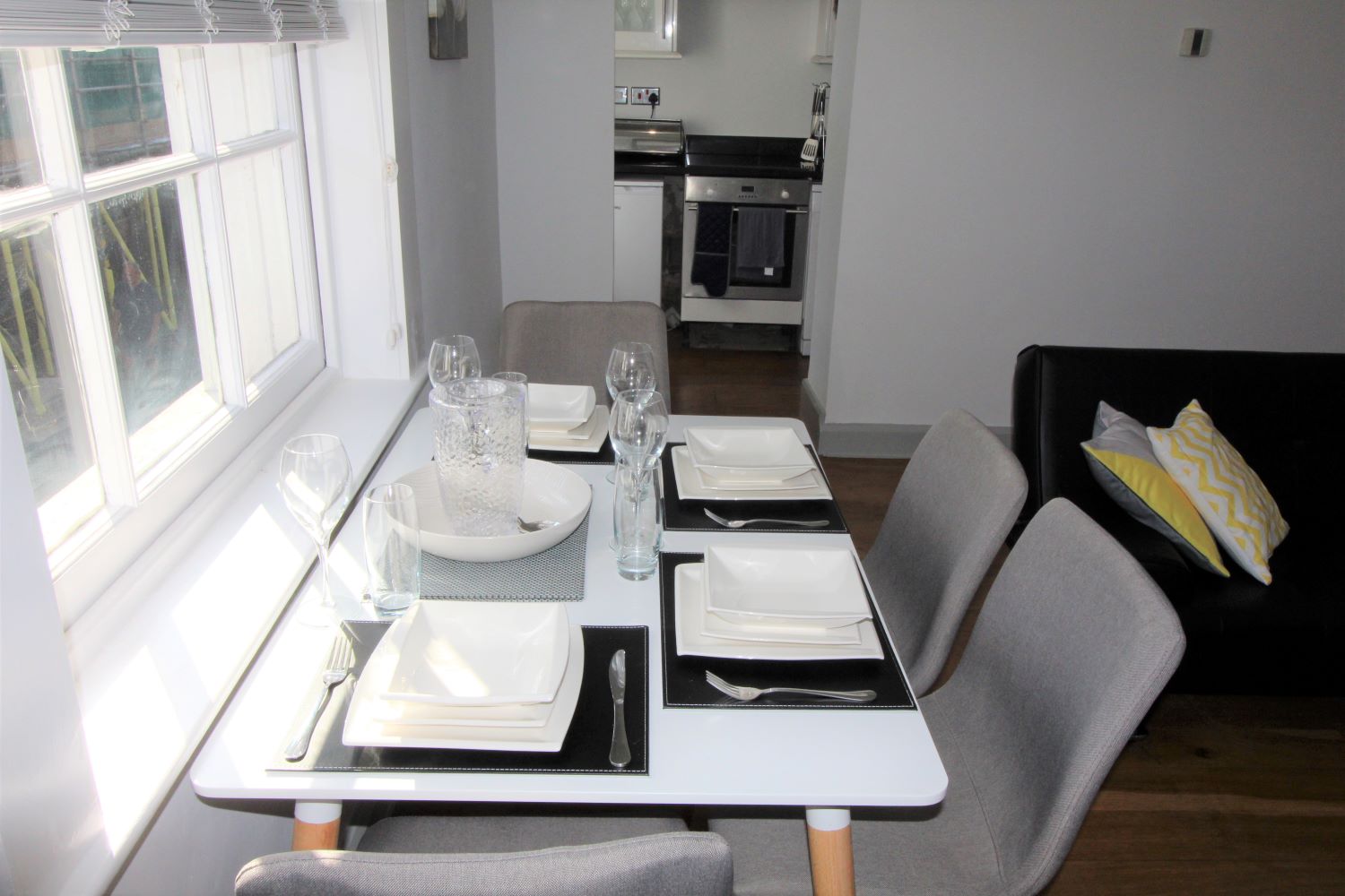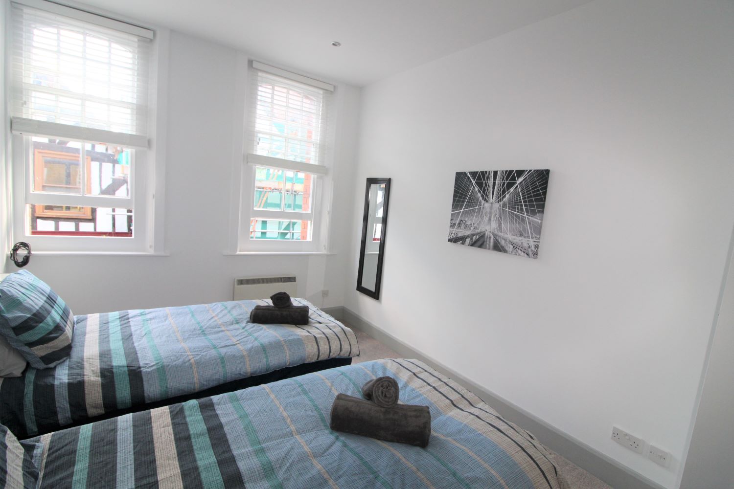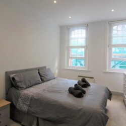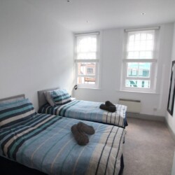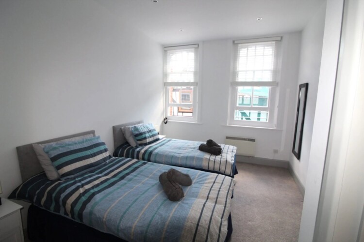 Central Winchester Apartment is a spacious two bedroom apartment located in the historic High Street in Winchester, Hampshire. The apartment is situated on the first floor and accessed via a door off the High Street. The apartment has recently been fully refurbished and furnished in a modern contemporary style. This property has recently benefited from noise reduction from new secondary glazing to the bedrooms offering a perfect solution to city living. The apartment offers 2 large double bedrooms bedroom one with a king size bed, wardrobe, chest of drawers and bedside cabinets including phone charging via bedside lamps. The other bedroom with two single beds that can be pushed together to make another double if required. This room also has a clothes storage and bedside cabinets including phone charging via bedside lamps. The kitchen is fully equipped with all cooking facilities, microwave, dishwasher, fridge, cutlery, crockery, pots, pans, toaster, kettle etc everything you would have at home for your stay.The open plan living area has seating and dining for 4 people as well as free view with catch up and Netflix premium enabled wall mounted TV for entertainment and streaming the latest films and music. There is also a double sofa bed. Full high speed wireless internet is also included. The best car park for overnight stays is Chesil Street Car Park, a short walk to the apartment *We request that photographic I.D with your address is sent to us once booked, this can be emailed to enquiries@simplycheckin.co.ukDetails
